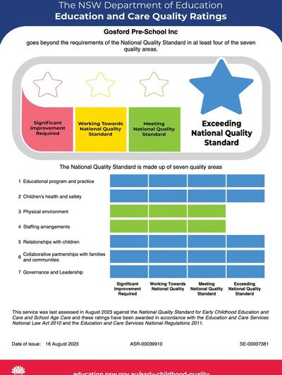 Education and care services are assessed and rated by their state and territory regulatory authority.